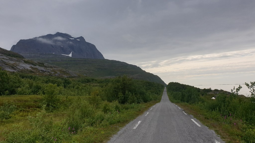 The other side of Eidetinden, photo taken on the following day’s run. Travel along this road 5-6 km and you reach the trailhead for walkable access to the peak. From the side shown here, you had better have climbing skills.